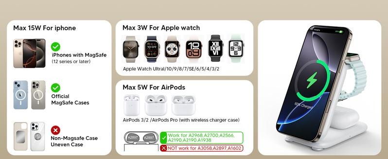 Traveling Fast Wireless Charging Station is designed for Apple devices. It supports magnetic 3-in-1 charging, making it compatible with iPhone 17, 16, 15, 14, 13, 12 Pro Max Plus, Apple Watch, and AirPods 4, 3, 2 Pro. This innovative stand ensures your gadgets stay powered without compromising style.